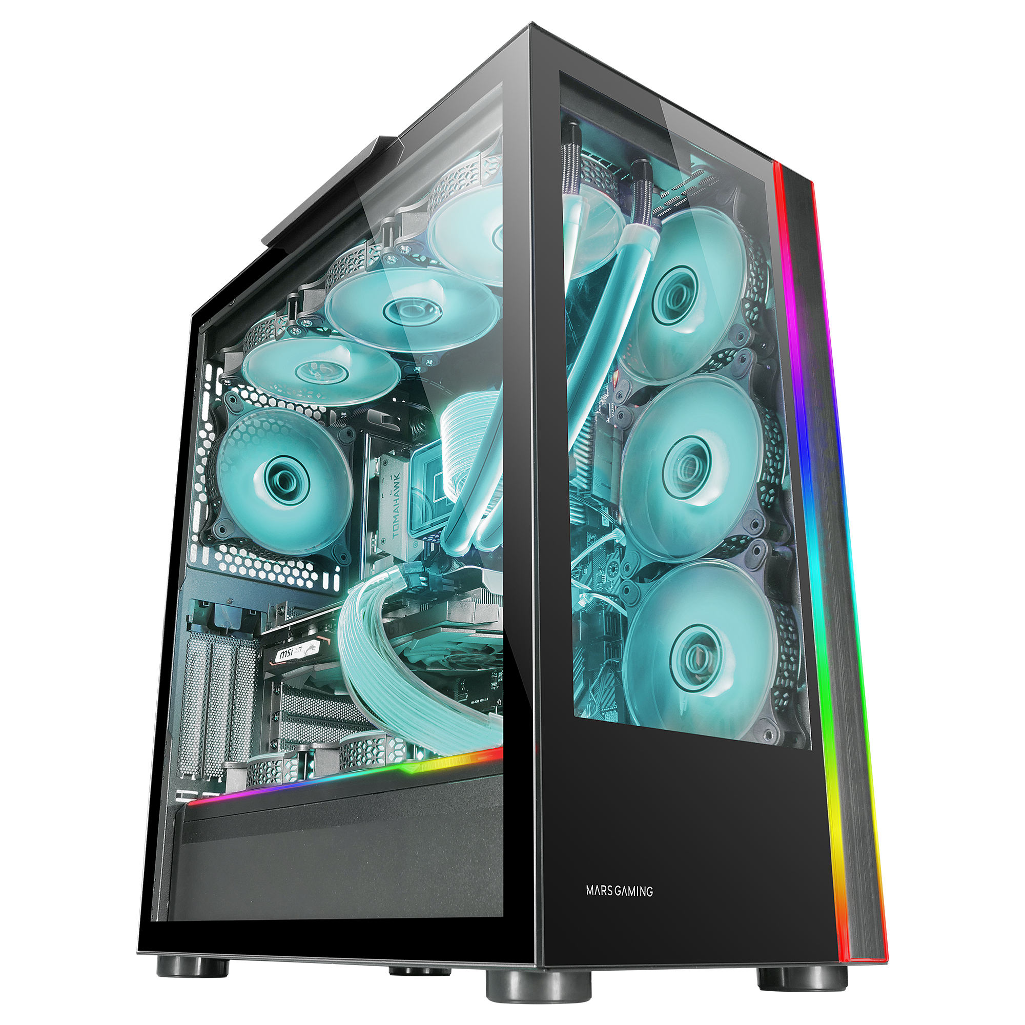 MC-ULT, Caja Gaming Custom XXL E-ATX, Doble Cristal Templado 90º Sin Marco + Puerta Lateral, Soporte Completo Refrigeración Líquida, Torre PC con Diseño de Cámara Dual Vertical, Negro